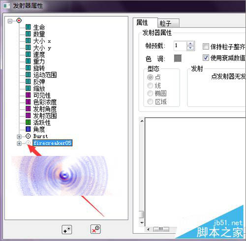 4、在打开的粒子属性中,如果不知道它文字粒子是哪一个的话,可以通过点击它前面的小圆圈来进行查看。如果点击了它的小圆圈后,在它的右边不显示它的文字的话,就说明这个就是它的文字层。如果点击了之后,在它右边还可以看到文字显示出来,就说明你所选择的并不是它的文字层。就需要重新选择其它粒子层。