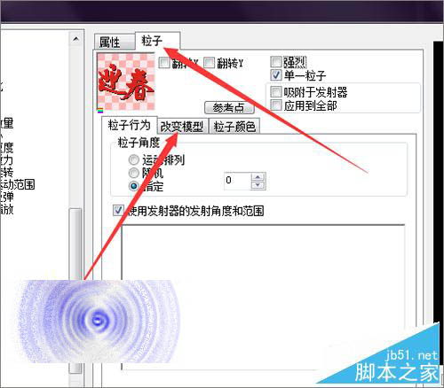 5、选中文字粒子层之后,点击右边的属性旁边的粒子。接着再点击下面的改变模型。我们需要在粒子模型中把文字粒子进行一个替换。