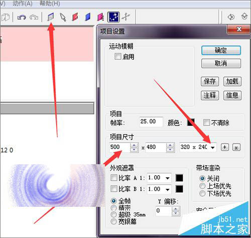 12、这里就把它的项目再进行一个调整。点击工具下面的项目标志。在弹出的项目设置中,把它的项目尺寸设置为500*480。然后点击确定。