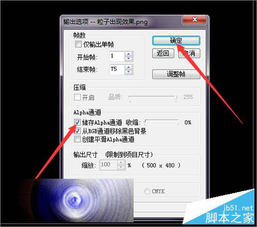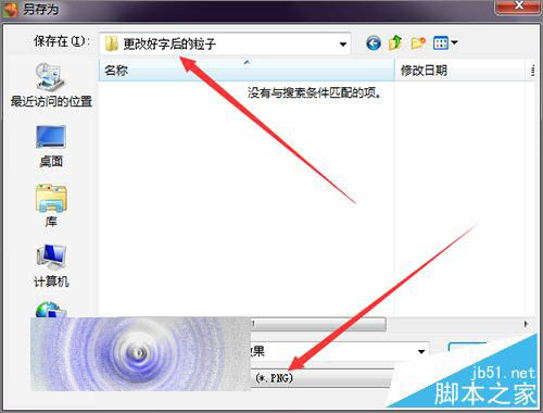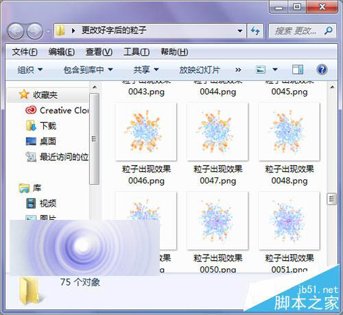 14、接着在它弹出的输出的文件夹中,最好是把它重新建一个文件夹放到桌面或者其它盘中。然后在它的保存类型中选择透明通道的png格式。设置好后点击保存。当它自动输出完成之后,在桌面上的粒子文件夹中,就可以看到输出的粒子序列图片。