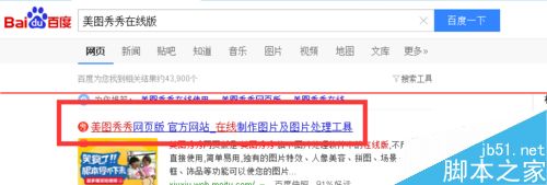 1、百度搜索“美图秀秀在线版”,打开第一个链接