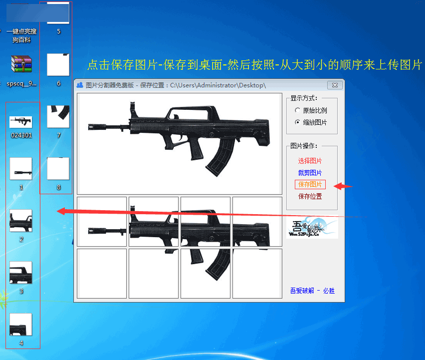 4.点击保存图片,然后按照从大到小的顺序来上传图片。