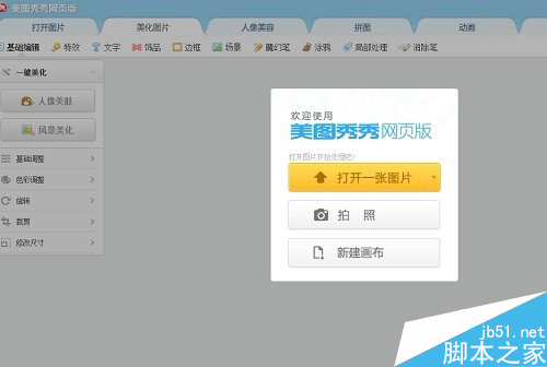 第二步:打开美图秀秀网页版后,点击“美化图片”后,你将看到下面的界面。