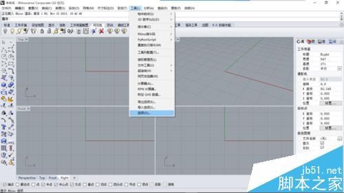 1、首先打开犀牛软件,依次点击《工具》--《选项》