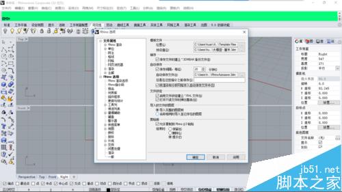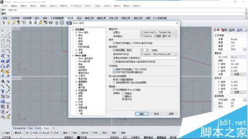 2、当出现以下对话框时,点击rhino选项中的《文件》,找到设置位置以后,我们就可以开始设置文件保存的选项了。