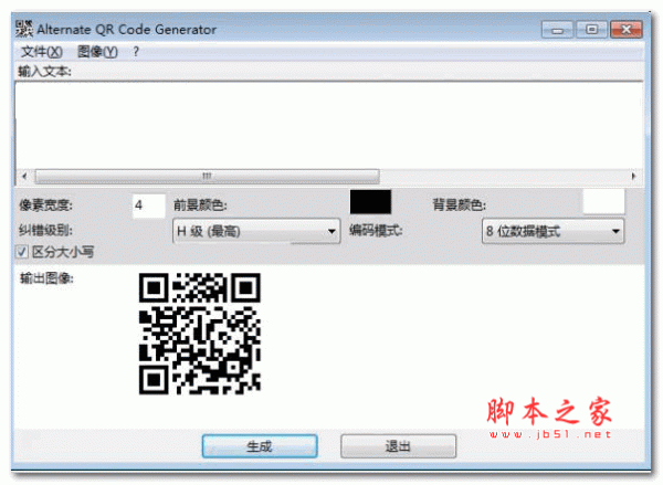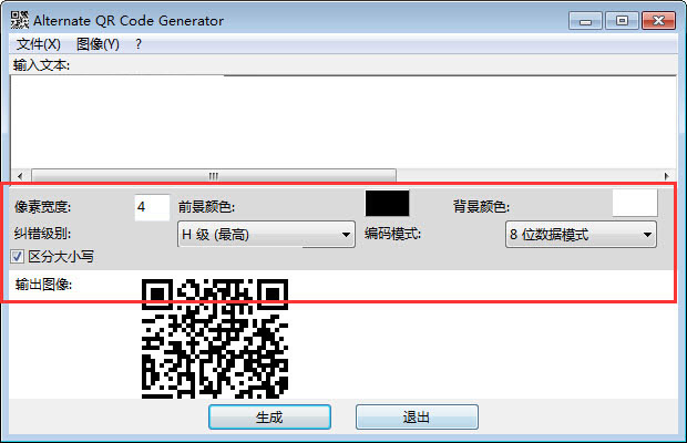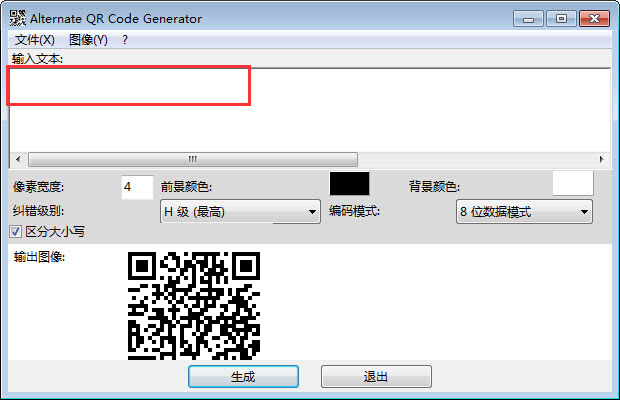 Alternate QR Code Generator二维码生成器是一个简单的程序来生成QR码(QR码)二维码生成器,以制作出自定义文本信息的二维码图片,并可以设置二维码的像素宽度、前景颜色、背景颜色、纠错界别、编码模式以及是否区分大小写,生成的QR码既可以保存为图像或复制到剪贴板中的其他程序中的用法。