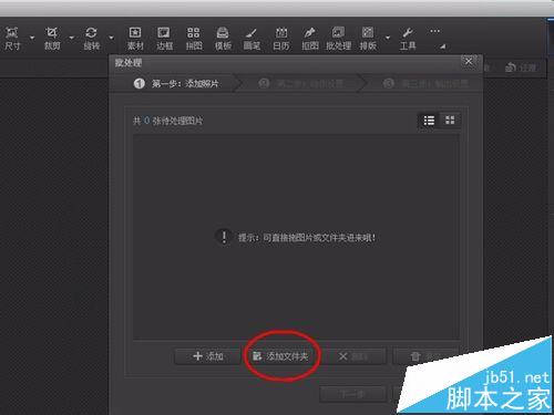 2、打开工具栏上方的“批处理”,然后点击“添加文件夹”。