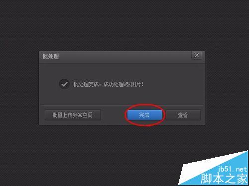 6、处理完毕之后会弹出如图的对话框,点击“完成”,然后可查看已处理好的图片。查看已处理好的图片尺寸大小,可点击图片的“属性”进行“详细信息”的查询即可看到。