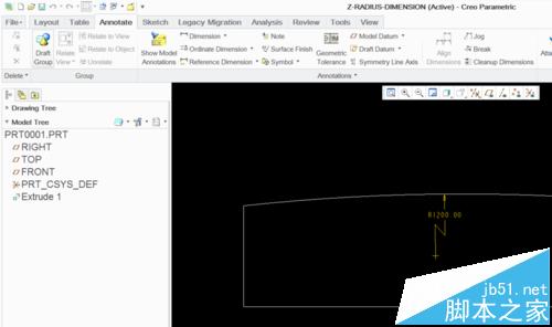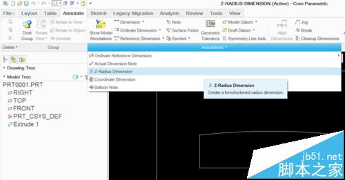 1) “Annotation”下拉选项卡,选择“Z-Radius Dimension”