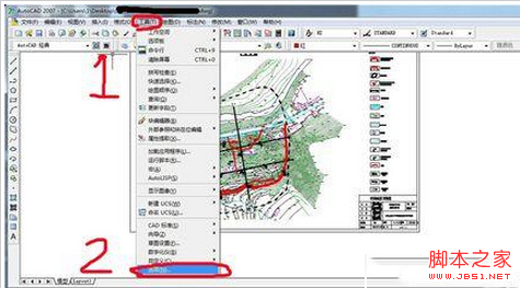 2、点字体选择框的关闭按钮,进入CAD工作界面。在菜单栏点击工具,选择选项。