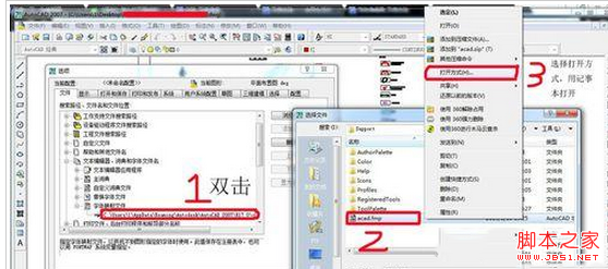 4、进入字体映射文件的存盘位置,右键单击acad.fmp文件,选择打开方式,用记事本打开。