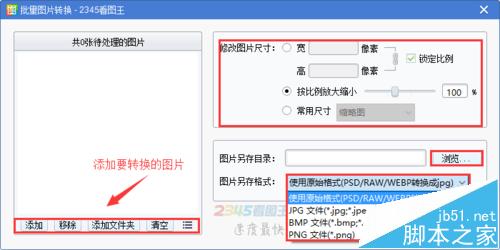 3、设置好图片尺寸以及转换后的储存位置(默认在资源所在目录下新建“看图王批量图片转换结果”目录存放结果),点击“开始转“等待转换就可以了。