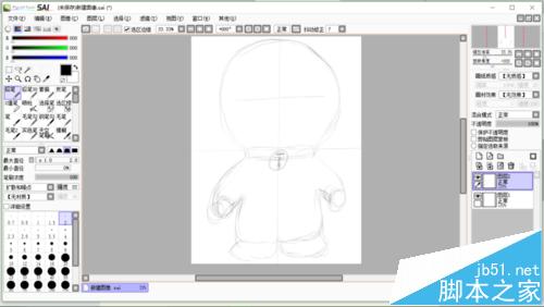 1、哆啦A梦(下面我只称为小叮当)的头身比大概是1:1,鉴于这个比例,画出辅助线或者说分割线。