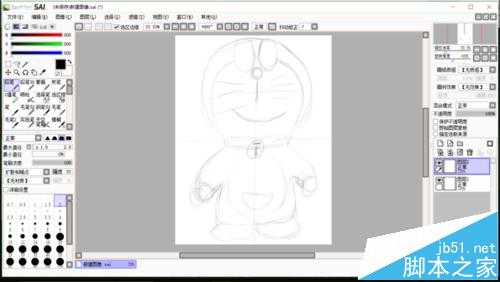 3、然后再使用铅笔工具画上其他细节,眼睛、鼻子、胡子、嘴巴、百宝袋等,感觉这只小叮当有点偏瘦啊。