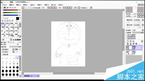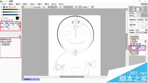 5、草图调整完成后,新建钢笔图层勾线,可以使用左侧红框圈注的工具进行勾线以及线条调整,这里就不展开了。