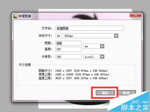 2、新建一张纸,纸张的大小看自己的需要和想法。把数值填写完成后,点确定。这一点和ps一样。