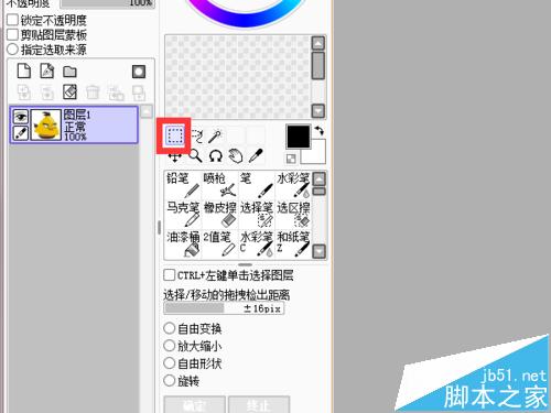 4、选中后“CTRL+C""CTRL+V"复制到新建的纸张上。SAI上这一点比较麻烦些。然后按住"CTRL+T”图片四周会出现边框,按住"SHIFT"拉大到合适的位置。点击“ENTER"就可以了。