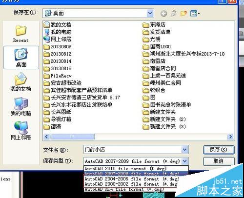 4、在“保存类型”里你可以选择低版本的CAD类型进行保存,一般情况下。2004版本的CAD格式就可以了。