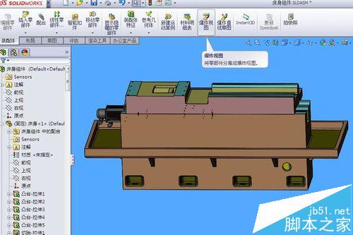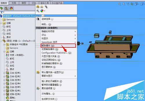 6、在右边的设计树中床身组件点击右键,选择解除爆炸
