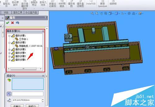 4、按照上述的方法可以依次对零部件进行修改,在爆炸参数中会显示依次拖动的步骤,通过编辑可以对步骤进行修改