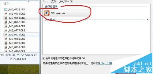 3、找到要查看的cr2文件,点击鼠标右键,选择“打开方式”,在弹出的对话框中,若有FastStone Image Viewer软件,则直接选择它,点击“打开”;若对话框中没有FastStone Image Viewer软件,则点击对话框右下角的“浏览”,找到FastStone Image Viewer软件,点击“打开”,则cr2文件就可以查看了。