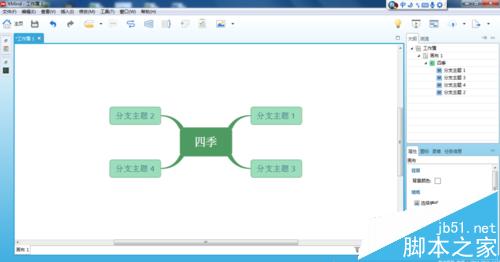 4、修改中心主题内容,并给其添加四个子主题,如下图所示: