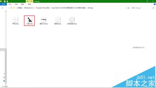 5、将文件暂时保持到其它位置之后再把文件复制到Sai软件路径下的elemap文件夹下,现在可以看到我命名为“三角.bmp”的文件出现在该文件夹中了。