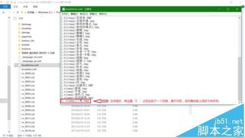 7、打开之后就可以看到各种笔刷数据了,因为我是放到elemap文件夹下的,所以在最后一行添加“2,elemap\三角.bmp”,注意,三角.bmp是我命名的图像文件,换成你命名的图像文件即可。还要注意的是输入的书写格式。