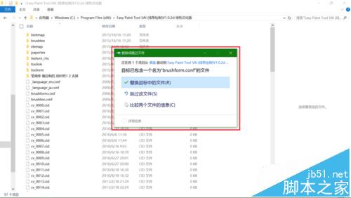 9、上一步骤说保存到其它位置,但并不是保存到其它位置就完事的,还要将它复制或者剪切到Sai的根目录下覆盖brushform.conf,如果你复制或者剪切过来没有提示覆盖的话,说明你另存为的文件名或者文件格式有问题。