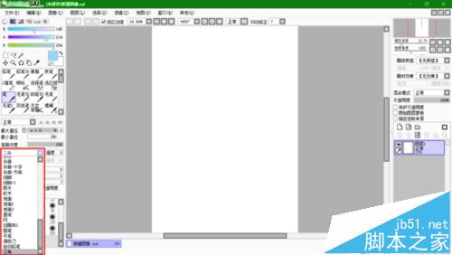 10、前面的步骤如果走到位了,就可以打开Sai软件来看看笔刷是不是出现在如图的位置了,然后再空白画布上画一画试一试。