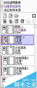 4、接下来新建图层,选择创建剪贴蒙版。这里我要把它的头发用喷枪轻轻的刷上了一层橙色。