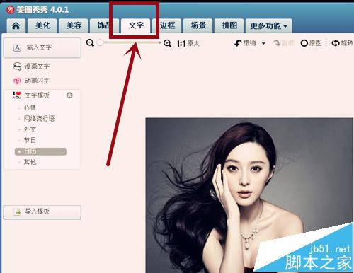 2、打开一张原图。打开一张需要添加文字的原图,小编此处选择的是一张范冰冰的明星图片,等一下需要对其添加文字。