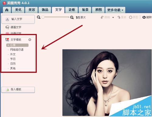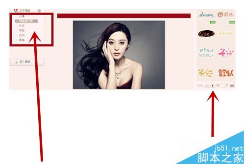 注意事项:在文字模板中有心情、网络流行语、外文、节日、日历和其他文字类型,我们可以在图片的右侧进行预览并选择合适的文字图案。