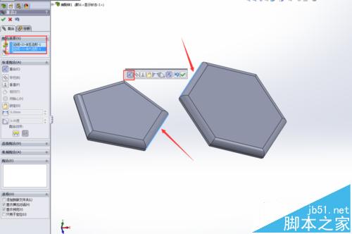 3、这一步是为了确定三个面的位置。同时在五边形上做一个临时基准面。