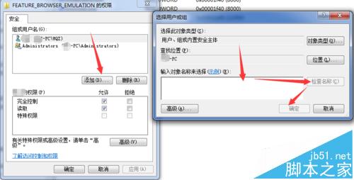 添加方法:单击添加,然后直接在输入对象名中输入administrators 系统将自动查找,按照提示完成添加。