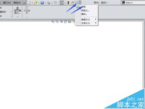 1、打开调整对话框。点击操作界面最上方的按钮旁边的小三角,展开后选择选项按钮,弹出调整对话框。