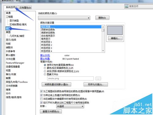 二是选择颜色,对工程图背景,纸张背景全部调成白色背景,以及视区背景为白色