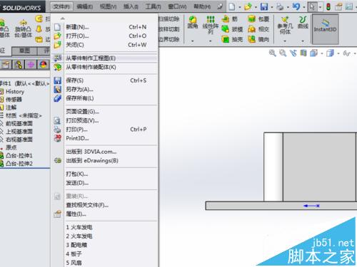 2、从模型生成工程图命令。界面的左上角选择文件,并用鼠标左键点击从零件制作工程图,进入下一个命令,再进行下一步操作。