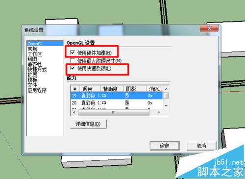 3、为了避免过卡,将阴影去掉,选取硬件加速