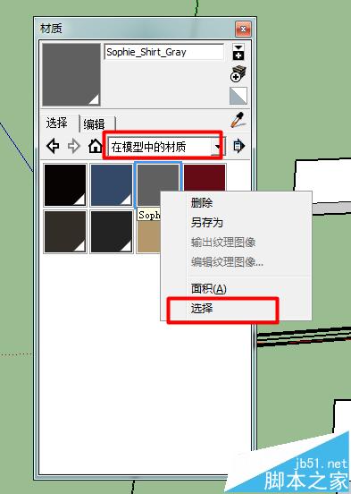 5、使用材质填充,选择模型中的材质,右键选择,即可选择同一材质的面域