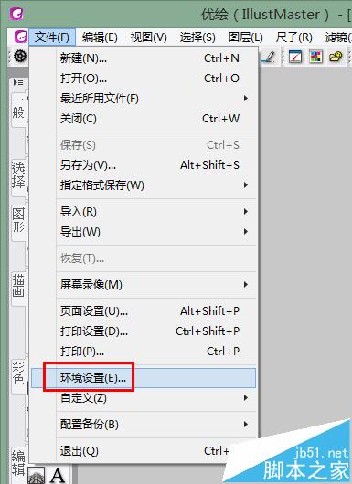 4、点击菜单“文件”-“环境设置”,可以逐一对优绘的各项进行设置。