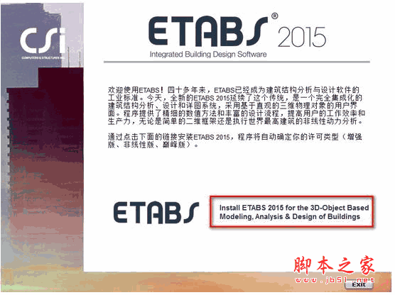 以上就是脚本之家小编为大家带来的ETABS 2015图文安装教程,希望可以帮助到大家,大家如果还有疑问的话,可以在下方的评论框内给我们留言哦。我们会尽自己所能的为大家解答。谢谢大家一如既往的支持,也请大家继续关注脚本之家的后续教程和软件。