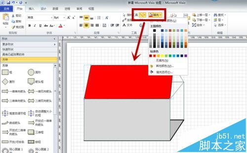 3、先描绘出小屋的底座,并调整所绘图形的线条格式和填充格式,如图所示。