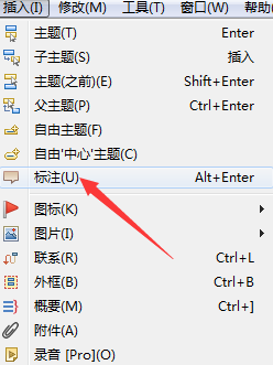 方法一:右击主题,在“插入”中选择标注选项。