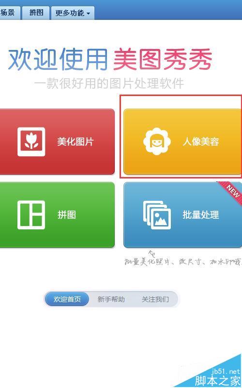 1、首先,下载美图秀秀,然后打开。(在线使用的也可以,只是些界面会不太一样、还有一些字体不能调粗细而已咯。)选择人像美图。