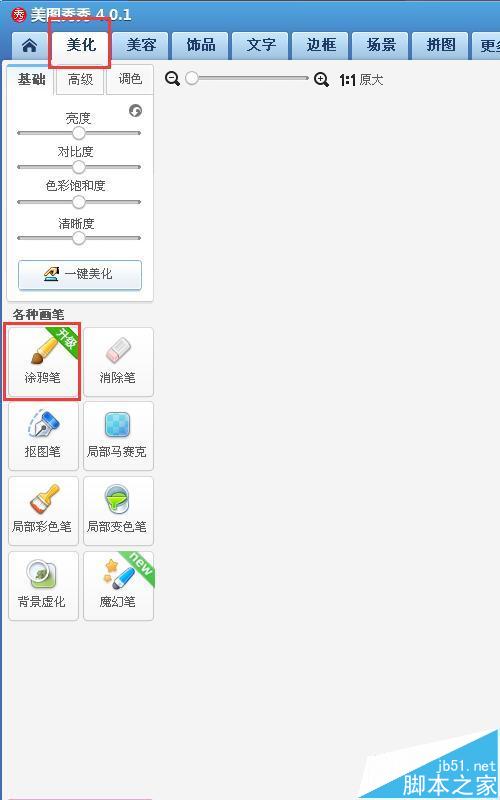 3、点击左上角的美化界面,选择下方的涂鸦笔。(为什么要涂鸦,请往下看,跟着小比一步一步做的都是乖孩子。)