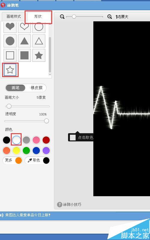 4、选择右边的形状涂鸦,涂鸦笔选白色。(这是必须的,听话。为什么选白色的结尾说。)把需要的图案涂鸦上去。