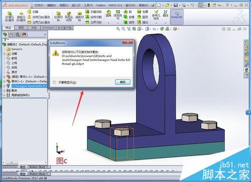 在solidworks建模过程中,常常会使用toolbox生成一些标准件的三维模型,为了更好地展示这些标准件在整个机构中的作用,我们会修改这些标准件的名称,如下图a所示,图中的“螺钉”便是这样一个由toolbox生成的被修改了名字的标准件,然而当再次打开这个装配体时,系统会自动替换掉这个零件,如下图b所示,被替换的零件除了名字被替换以外,同时只能读取不能编辑,如下图c所示,这里介绍一种防止solidworks自动替换装配体中的标准件的方法。