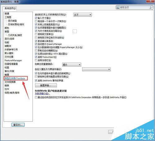2、在弹出的对话框中点击“异型孔向导/Toolbox”