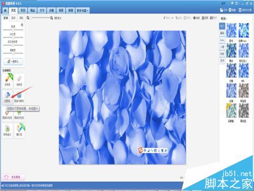 3、蓝色花瓣需要用到小瓣图片,可以用美图秀秀抠图笔“手动抠图”自己抠一下,把抠好的蓝色花瓣保存为前景素材。